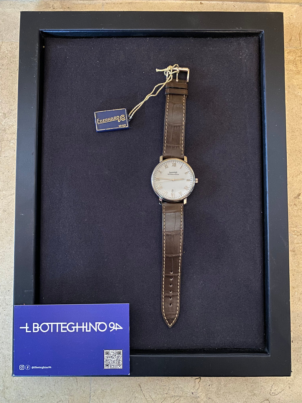N.B. Scatola sostitutiva originale Eberhard,orologio con scatola scambiata. (Rappresentata nelle foto)