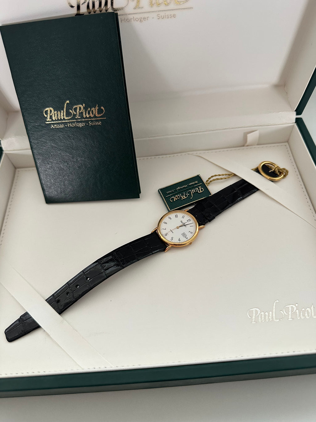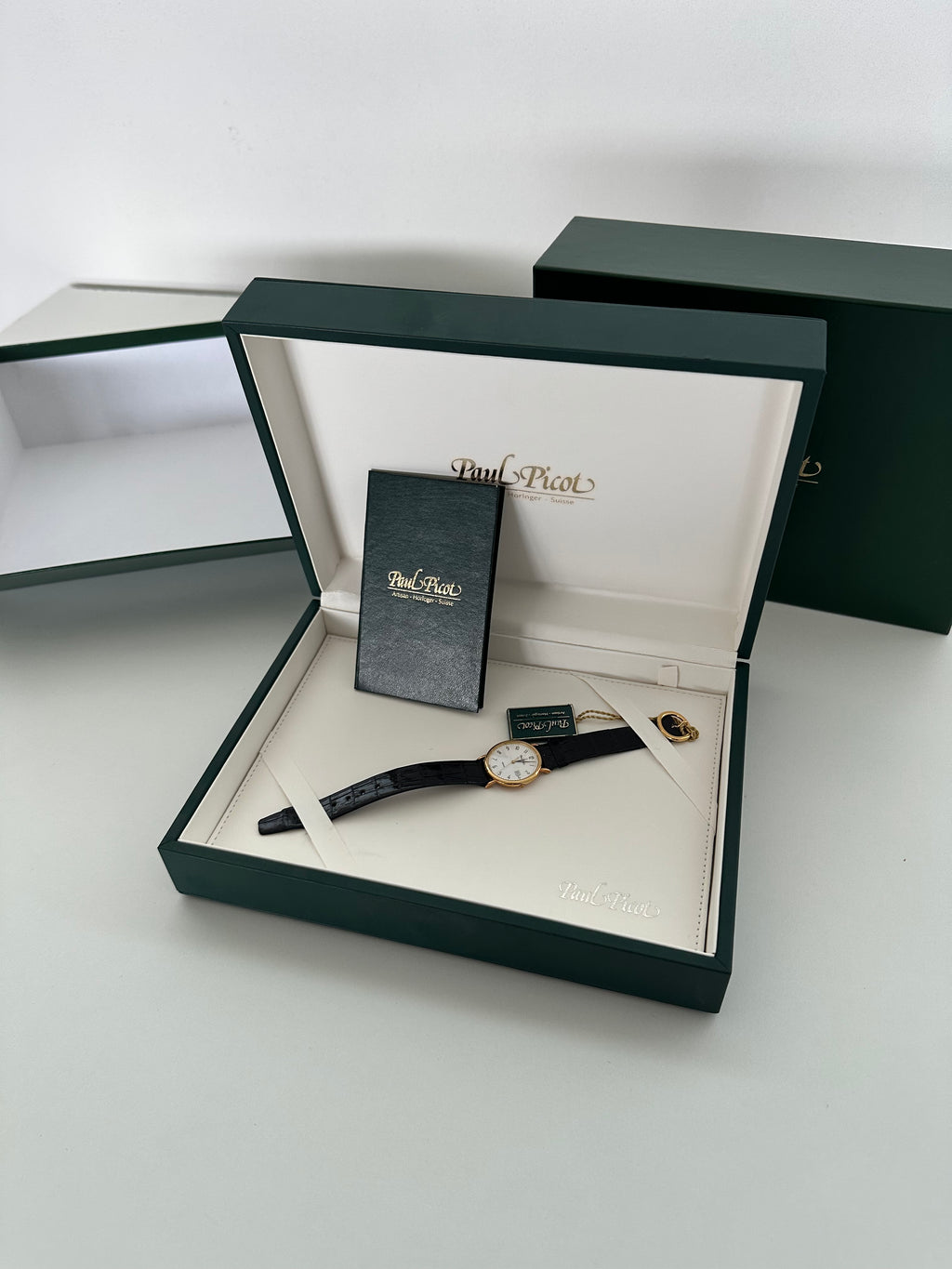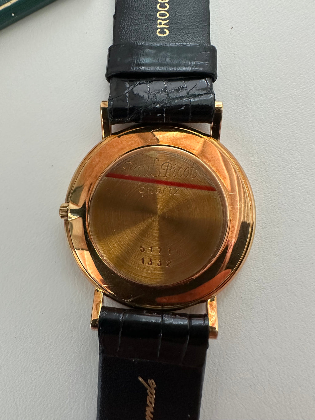 orologio donna in oro 18K, Paul Picot Quartz diametro 30mm (cassa e fondello in oro pieno 18k, come si nota dalle leggere sfumature rossastre causate dalla percentuale di rame al 25% dell'oro 18K)
