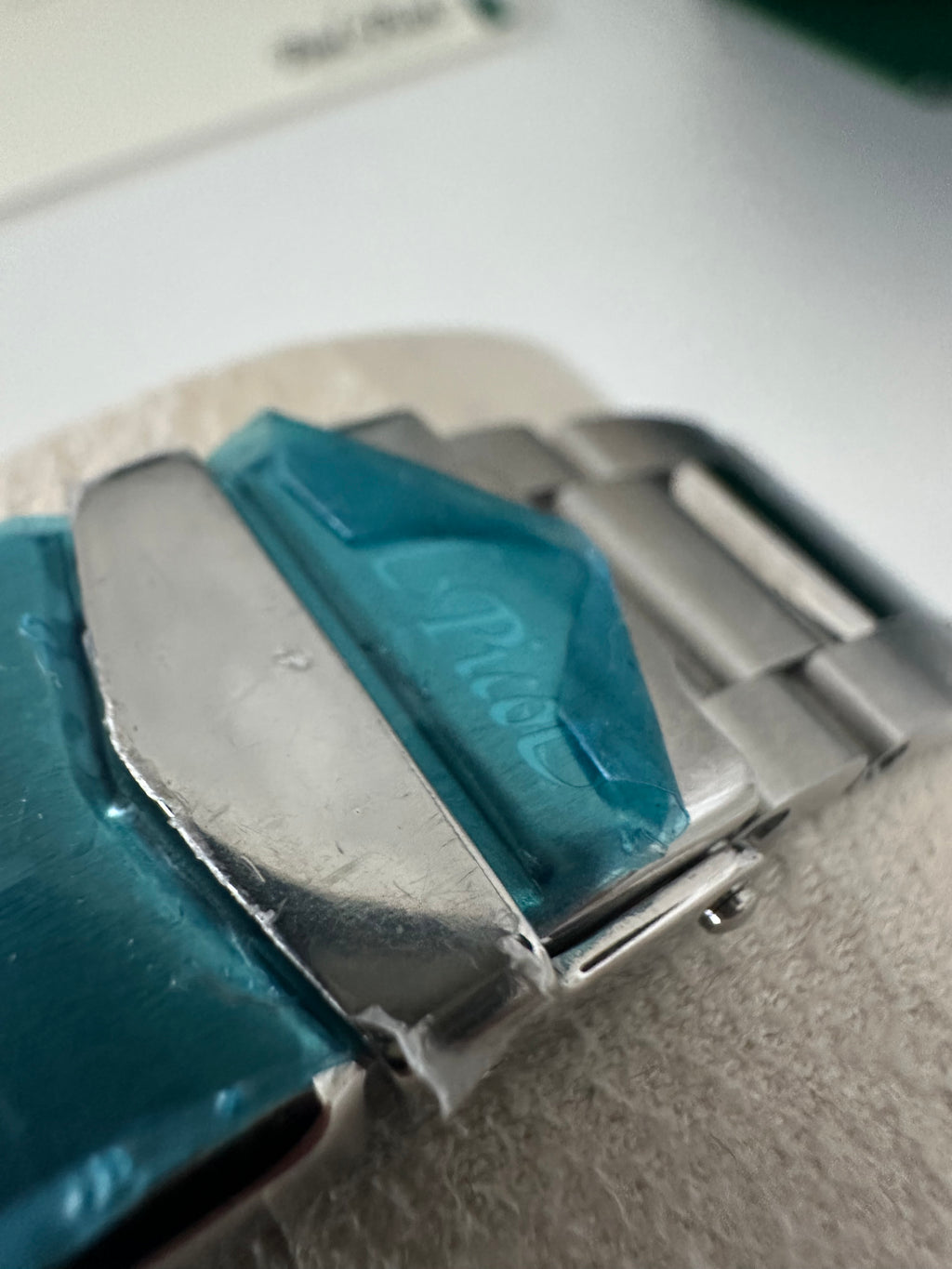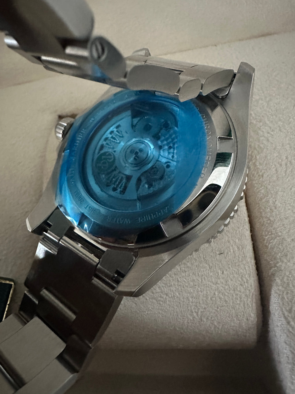 La chiusura è una deployante con fibbia di sicurezza. La corona è a vite, il fondello è scheletrato con vetro per vedere il movimento ed è serrato a vite. La resistenza all'acqua è di 20 ATM.